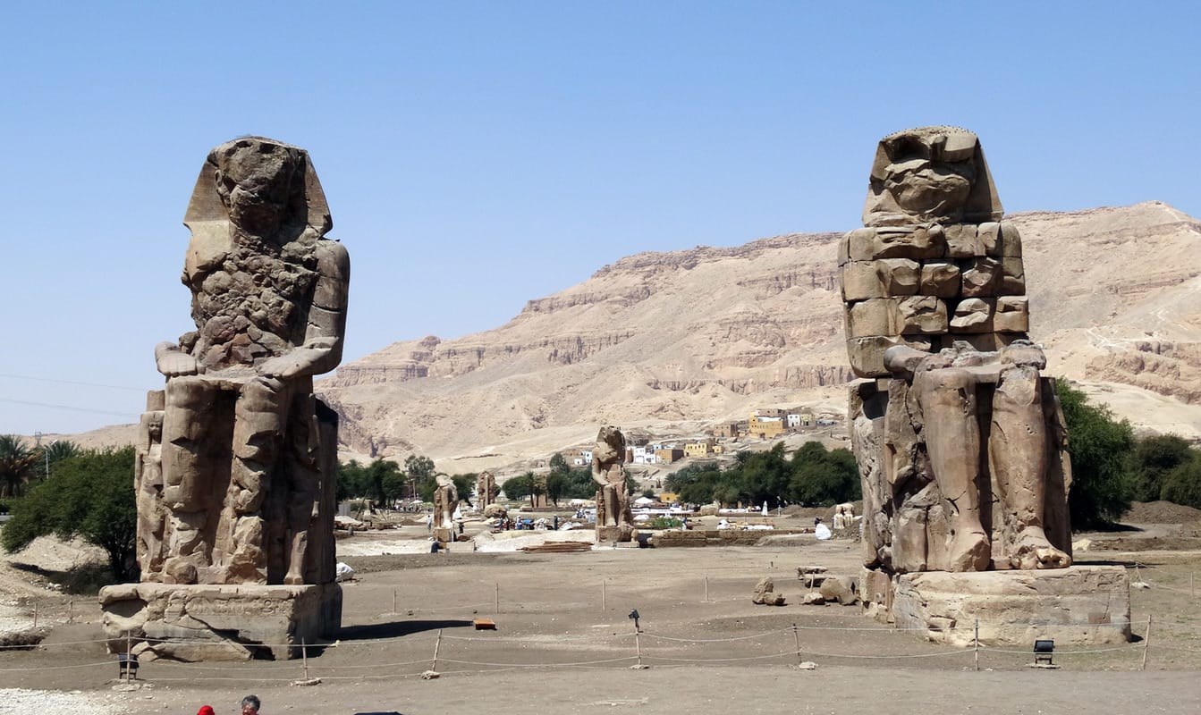 The giant alabaster statues, known as the Colossi of Memnon, were reassembled in a renovation project that lasted about two decades.