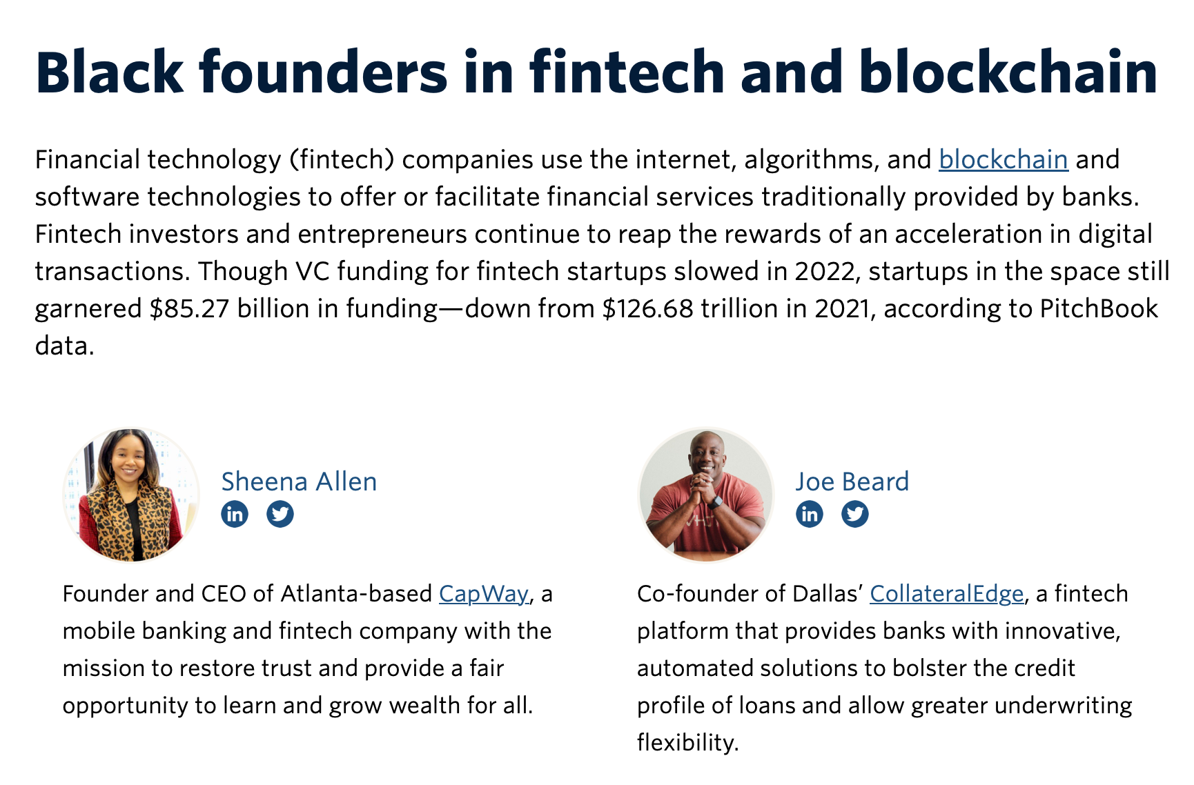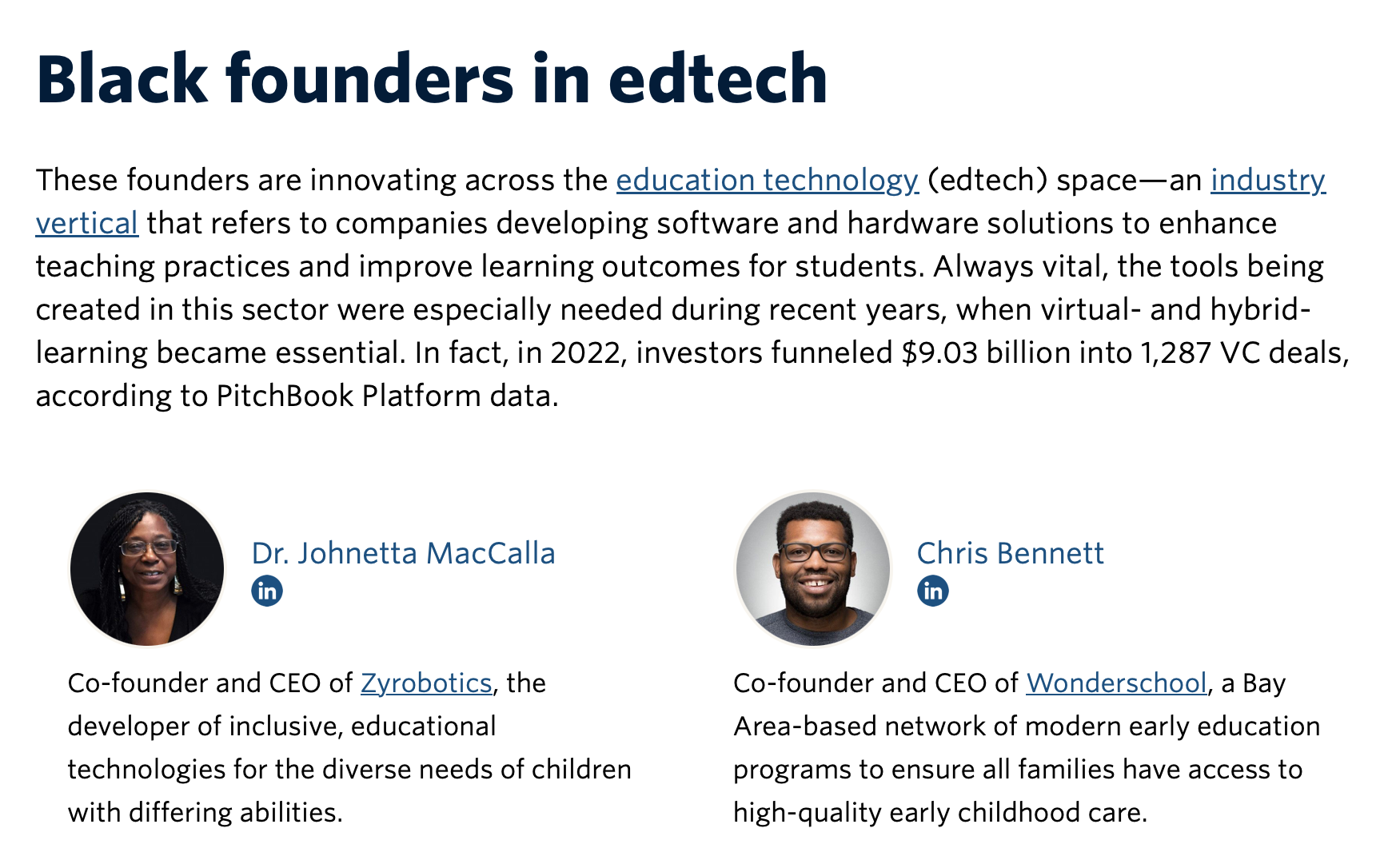 2023, our list of Black founders and investors to watch celebrates a small fraction of the Black leaders and innovators who are making impacts in their communities, industries, and beyond. The list, which was expanded from 66 to 82 founders and investors this year, features some familiar faces and some new names." LEARN MORE.