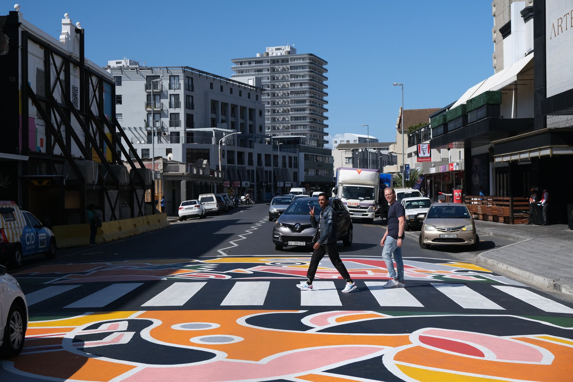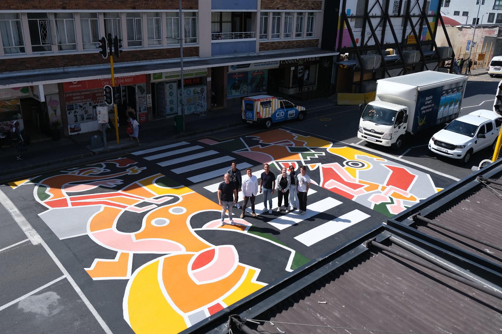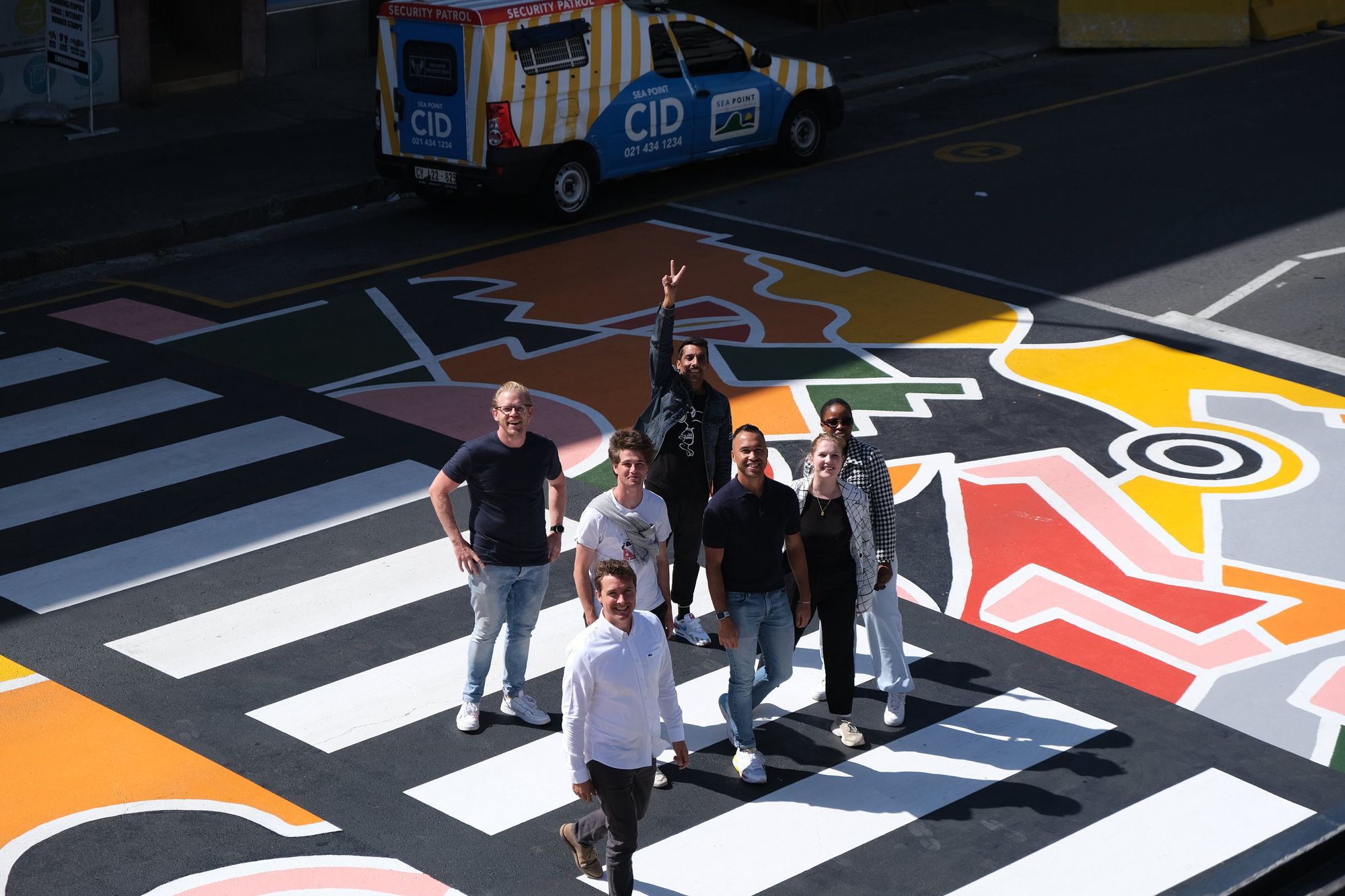"Recollection" is a colorful pedestrian street crossing in South Africa, produced by Our Future Cities, and designed by artist Al Luke.|