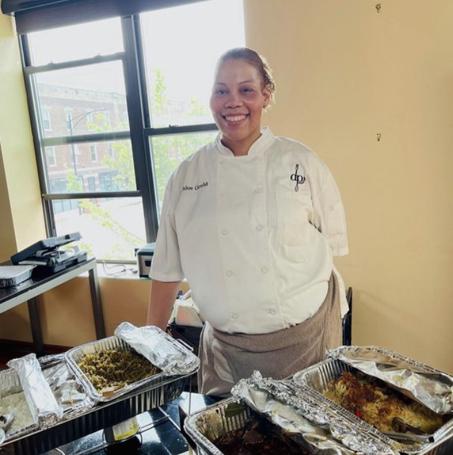 Throwing it back to the time when Chef Chloe Gould of DixiePura Kitchen catered lunch at The Bronzeville Incubator. The Bronzeville native taught culinary for seven months in Singapore and teaches culinary to high school students. Over the summer she competed and won The Food Network’s Supermarket S